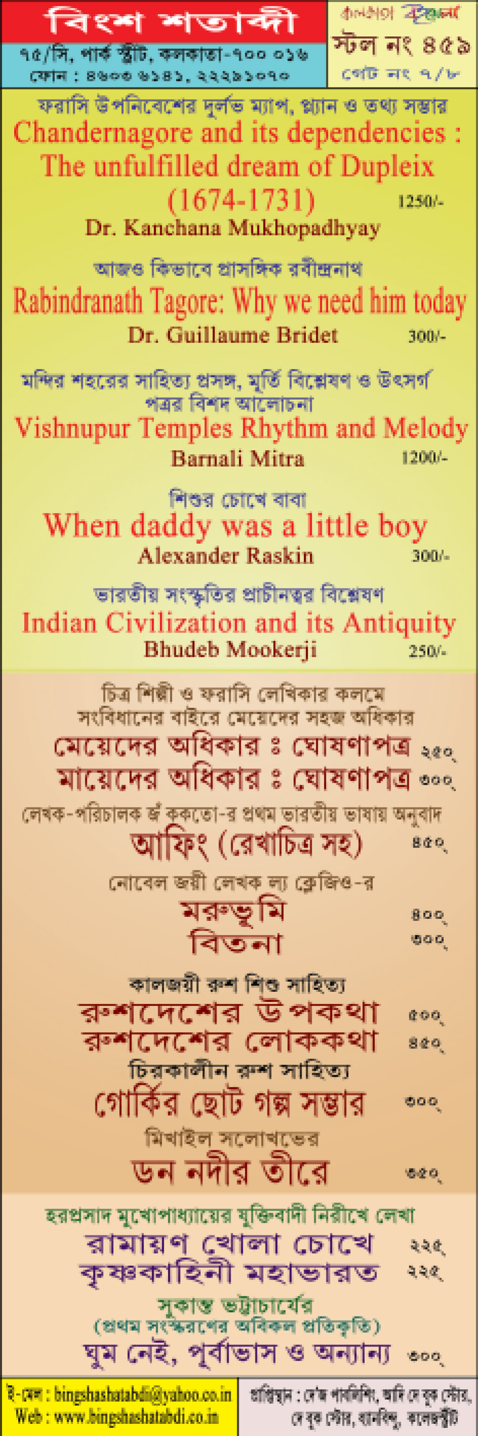 Originally written in French by Shumona Sinha, translated into Bengali by Professor Chandan Adhya